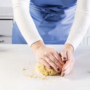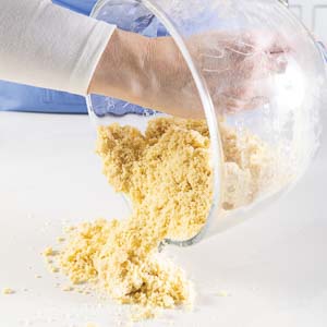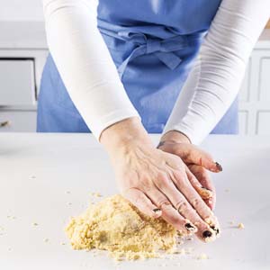 Soft butter makes a claggy mess. Start with it straight from the fridge and cut it into the dry ingredients just until the mixture clumps in soft, sandy pieces. You’re looking for texture, not uniformity.