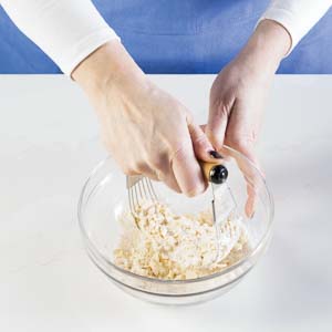 PASTRY BLENDER: To make the topping, a pastry blender cuts cold butter into the dry ingredients without warming it. If using your hands, work quickly to avoid melting the butter. (Pictured: Williams Sonoma Olivewood Pastry Blender.)