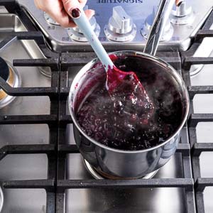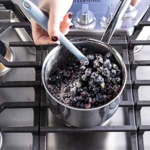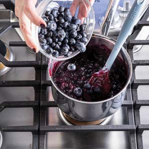 HEAVY-BOTTOMED SAUCEPAN: A sturdy saucepan ensures even cooking when simmering the blueberry compote. You want gentle heat to concentrate the flavor without scorching the fruit. (Pictured: Williams Sonoma Signature Thermo-CladTM Stainless-Steel Saucepan.)