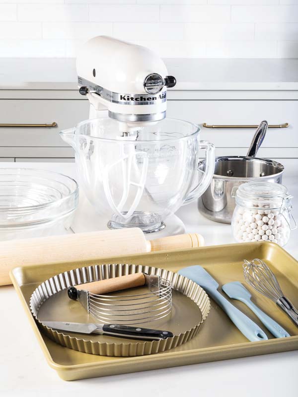ROLLING PIN: Especially helpful for rolling delicate dough like the Pâte Sucrée, this type of pin gives you more control and leverage, allowing you to maintain even thickness with minimal cracks. (Pictured: Patisserie Rolling Pin.)