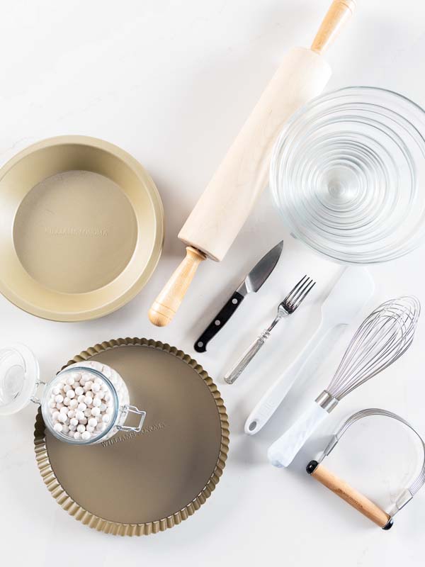 TART AND PIE PANS: For these recipes, fluted tart pans with removable bottoms are essential. You want crisp, clean edges and easy release. Stick to light-colored metal pans, which conduct heat evenly and avoid the overbrowning that dark finishes can cause. Deep-dish for pie, standard 10-inch for tart. (Pictured: Williams Sonoma Goldtouch® Pro Tart Pan with Removable Bottom and Williams Sonoma Goldtouch® Pro Nonstick Pie Dish.)