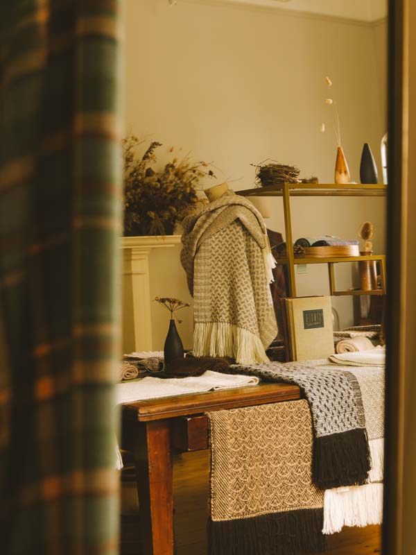“Today, the atelier is both a destination and the heart of the brand, embodying [my] mission to place the craft of handweaving on the centre stage. . . .It has been thoughtfully transformed into a space that honours the heritage of the building while providing a home for contemporary craftsmanship,” Araminta explains.