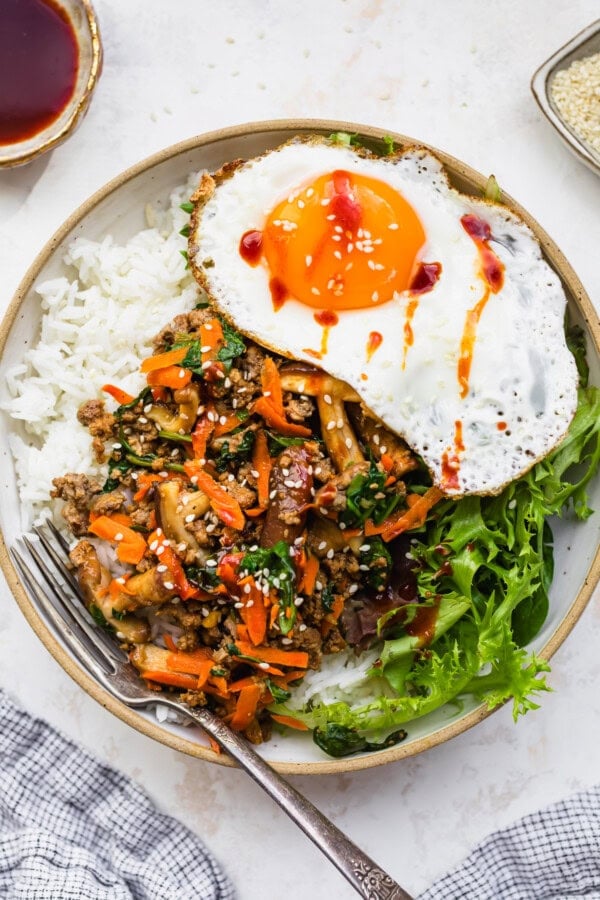 Ground Beef Bibimbap is a quick, Korean-inspired...